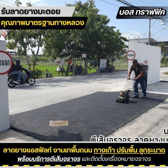 ต้องการทำพื้นปูพื้นลาดยางมะตอย แนะนำใช้บริการที่ บอส ทราฟฟิค ราคาถูก คุณภาพดี ได้มาตรฐานกรมทางหลวง เป็นบริษัทผู้รับเหมาที่มีความเชี่ยวชาญ ประสบการณ์สูง ใส่ใจรับผิดชอบการทำงานทุกขั้นตอน มีการรับประกันผลงาน พร้อมให้คำปรึกษาและประเมินราคาก่อนเริ่มงานลาดยางมะตอย ลาดแอสฟัลท์คอนกรีต รับงานทุกขนาดพื้นที่ ไม่กำหนดขั้นต่ำ ตั้งแต่งานเทพื้นถนนหลวง รับเหมาทำถนนเข้าหมู่บ้าน ลาดยางมะตอยบริเวณโรงงาน งานทำทางเดิน-ทางเท้า ทำใหม่ ซ่อมแซม ยินดีให้บริการ
